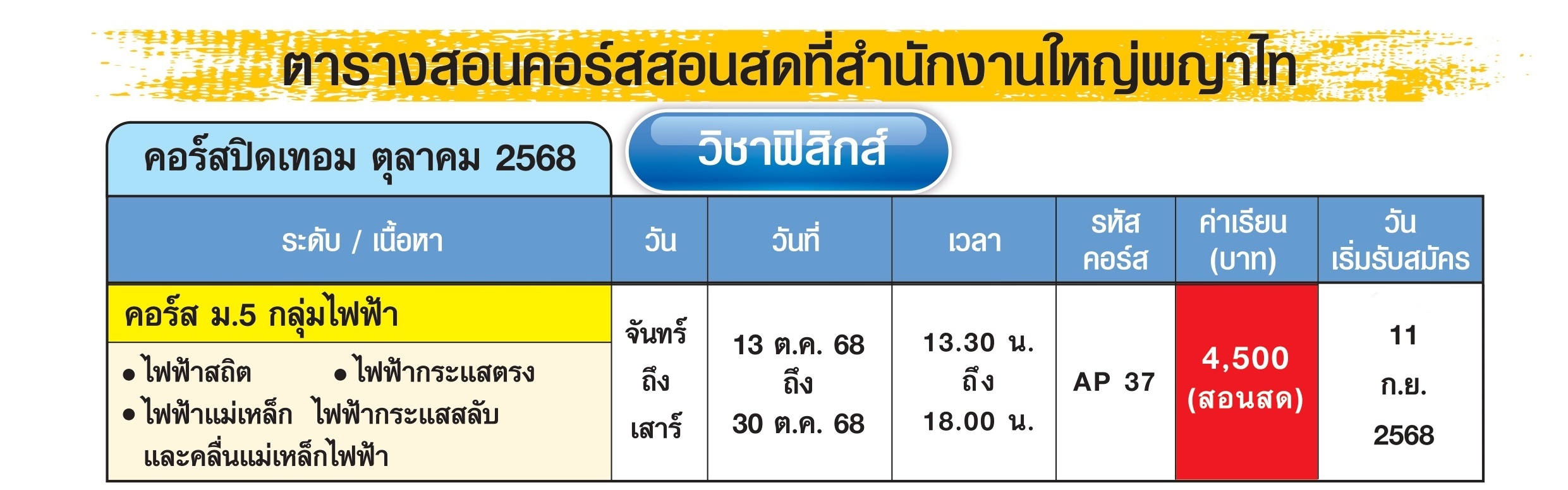 A: คอร์สฟิสิกส์ สอนสด มีคอร์สดังต่อไปนี้